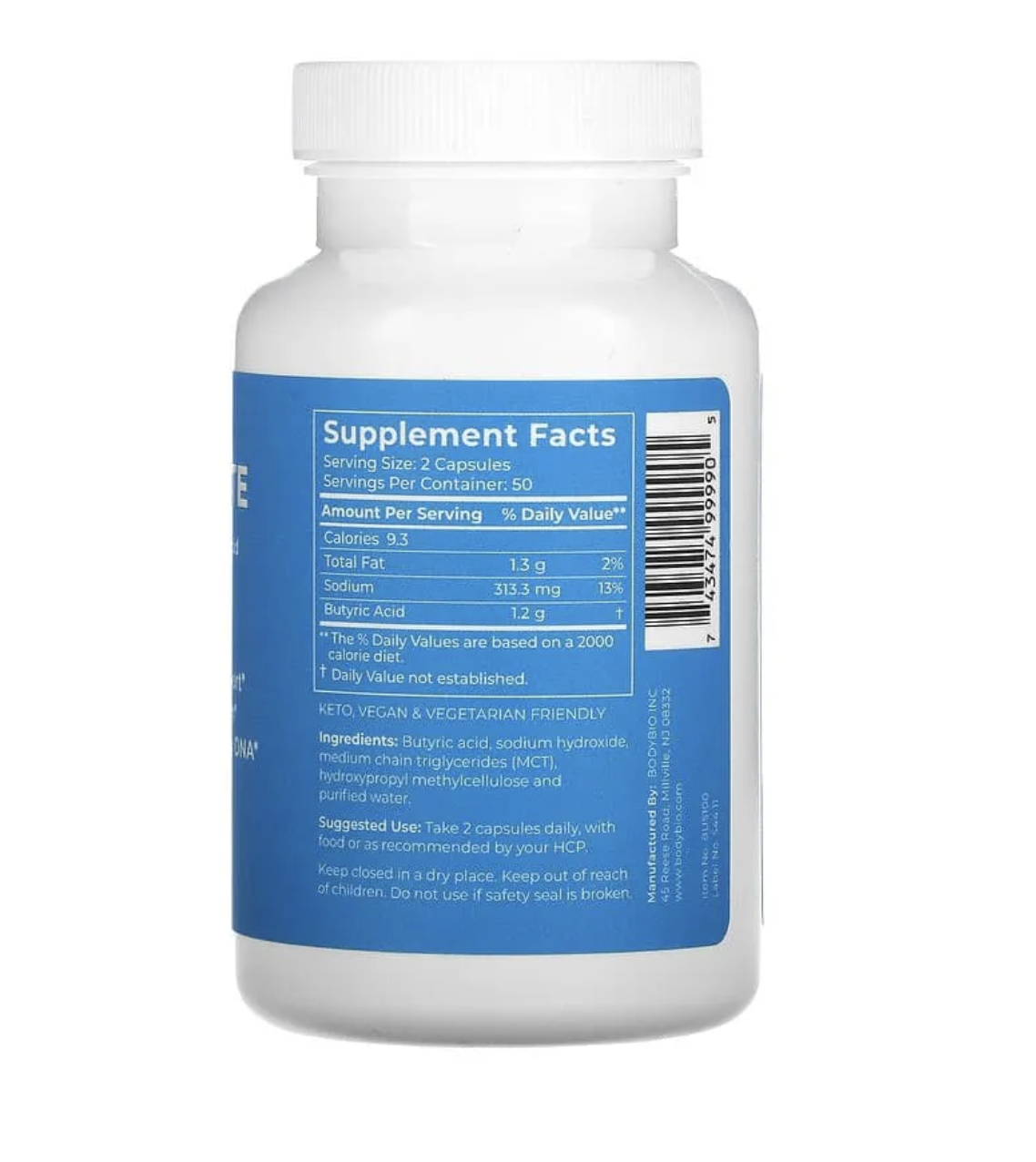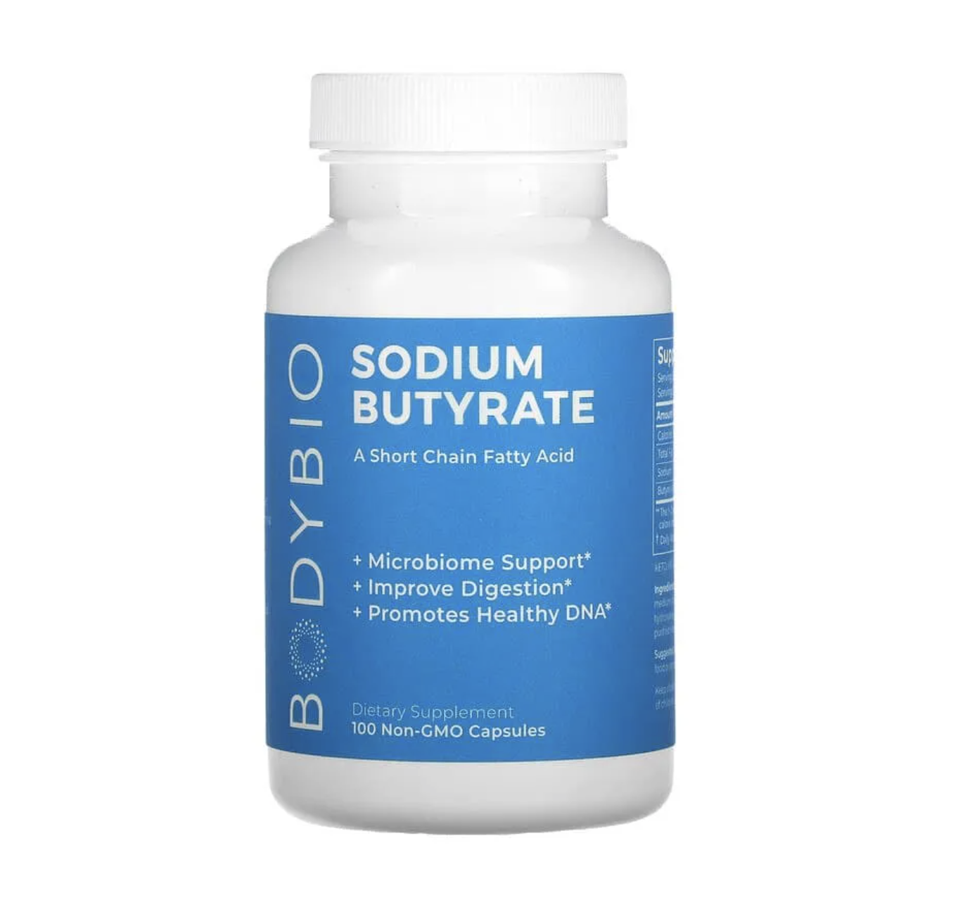 Бутират не является пребиотиком или пробиотиком. Это короткоцепочечная жирная кислота, которая питает клетки кишечника и способствует образованию здоровых бактерий для поддержки микробиома. Бутират является основой для здоровья кишечника и всего тела, а также поддерживает здоровую воспалительную реакцию в качестве ингибитора HDAC и секвестрирует аммиак для устранения тумана в мозгу. Бутират поддерживает слизистую оболочку кишечника, способствуя здоровому пищеварению, а также помогает контролировать аппетит за счет увеличения выработки лептина. Na добавлен для буферизации естественного pH масляной кислоты.