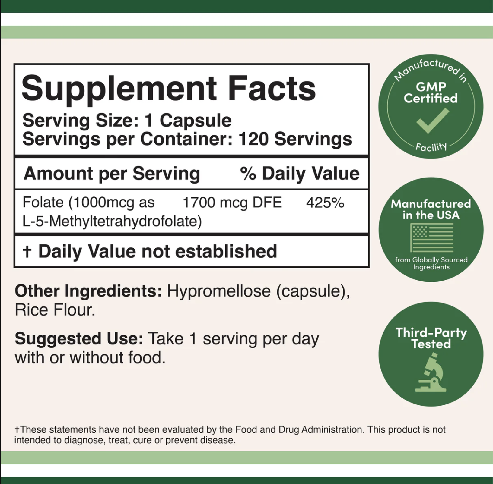 Метилфолат (5-MTHF) не требует сложного преобразования в печени, поскольку сразу усваивается в кровотоке. Это критически важно для людей с генетическими особенностями метаболизма фолата (например, вариациями MTHFR).*